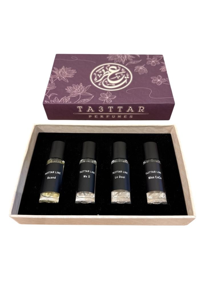 - باقة 4 عطور (للتجربة): ابدأ رحلتك مع 4 روائح مختارة بعناية. مثالية للتعرف على عالم "تعطر".